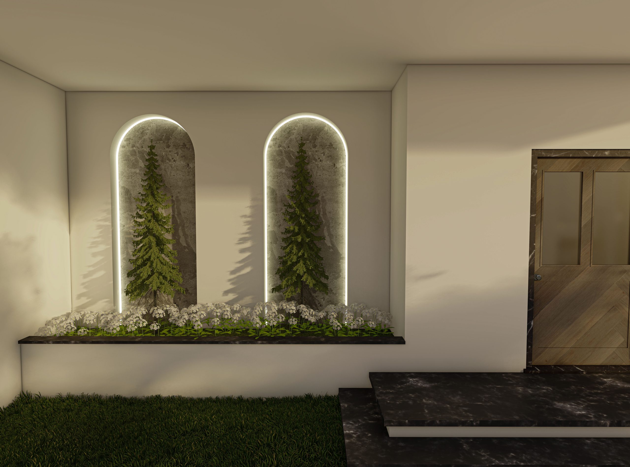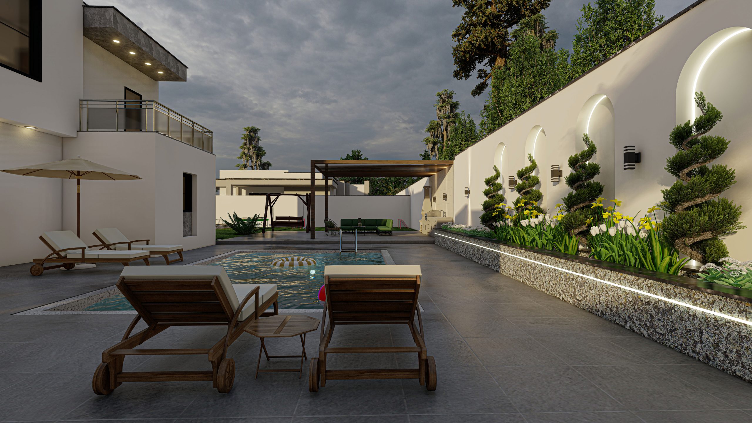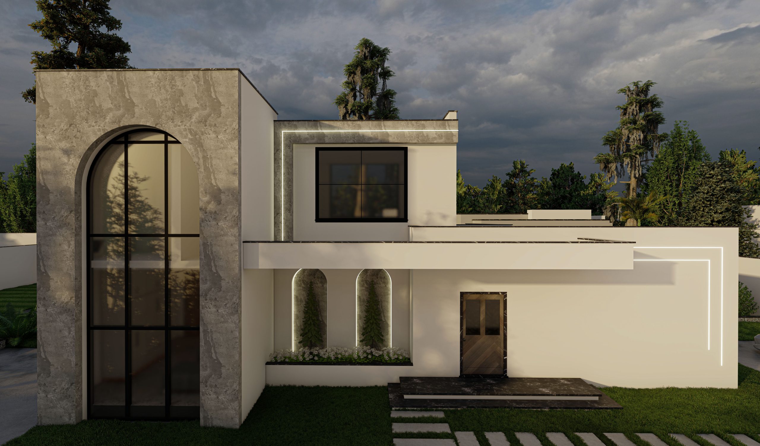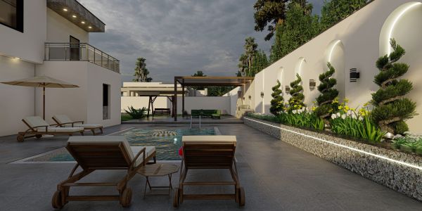 The design of a small pavilion within a 1,000-square-meter garden emphasizes arches as a key architectural element. Luxurious materials were added to enhance the design, while incorporating the client’s preferences for the surrounding garden.