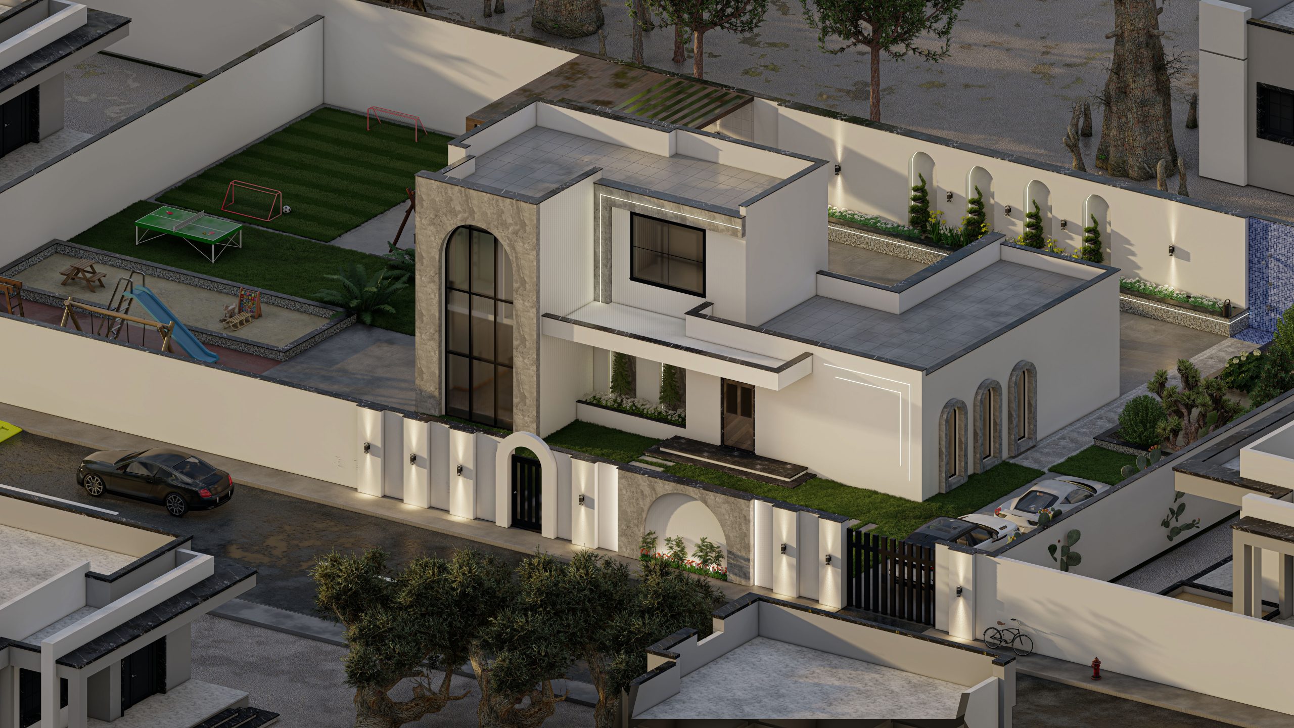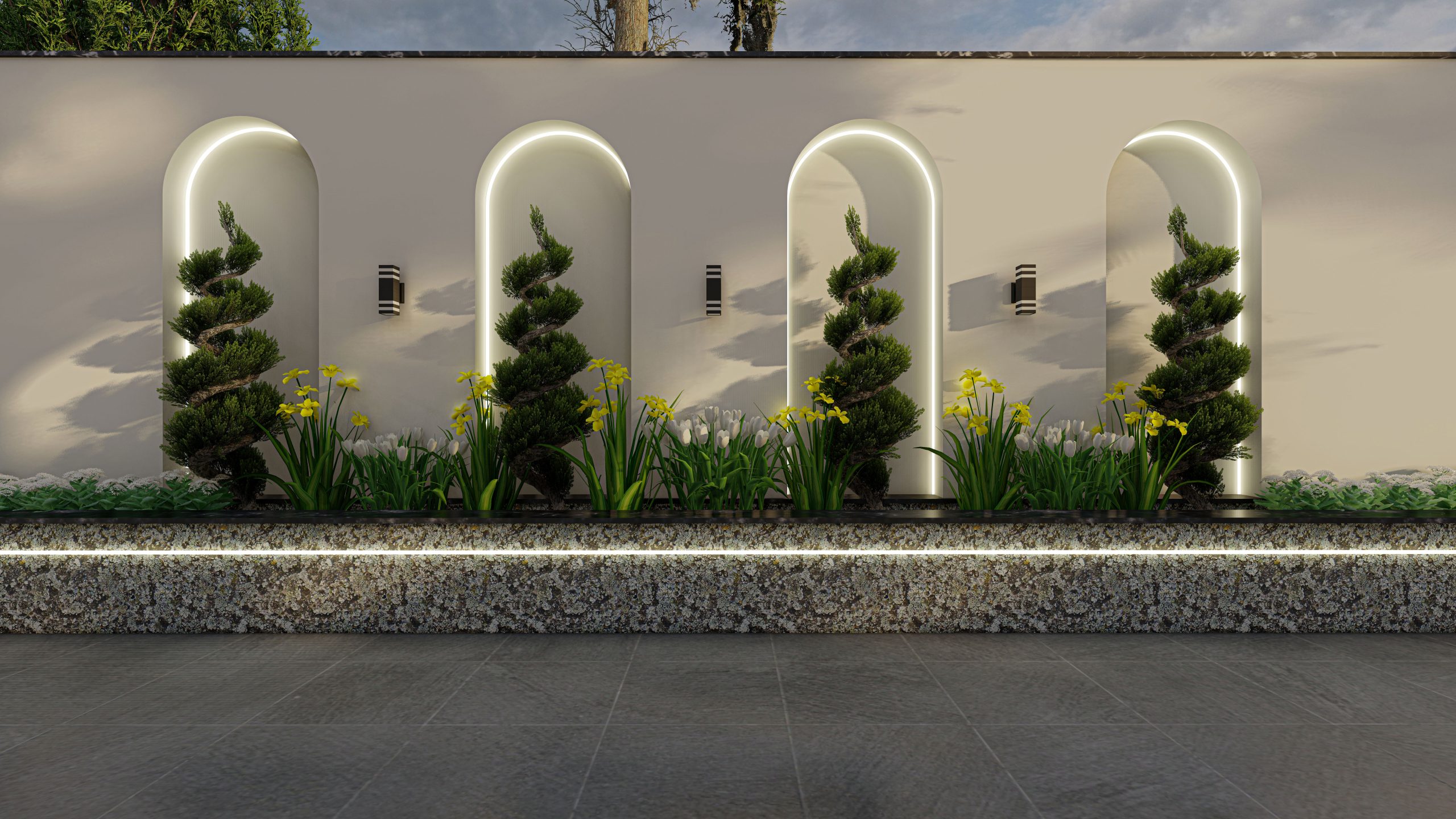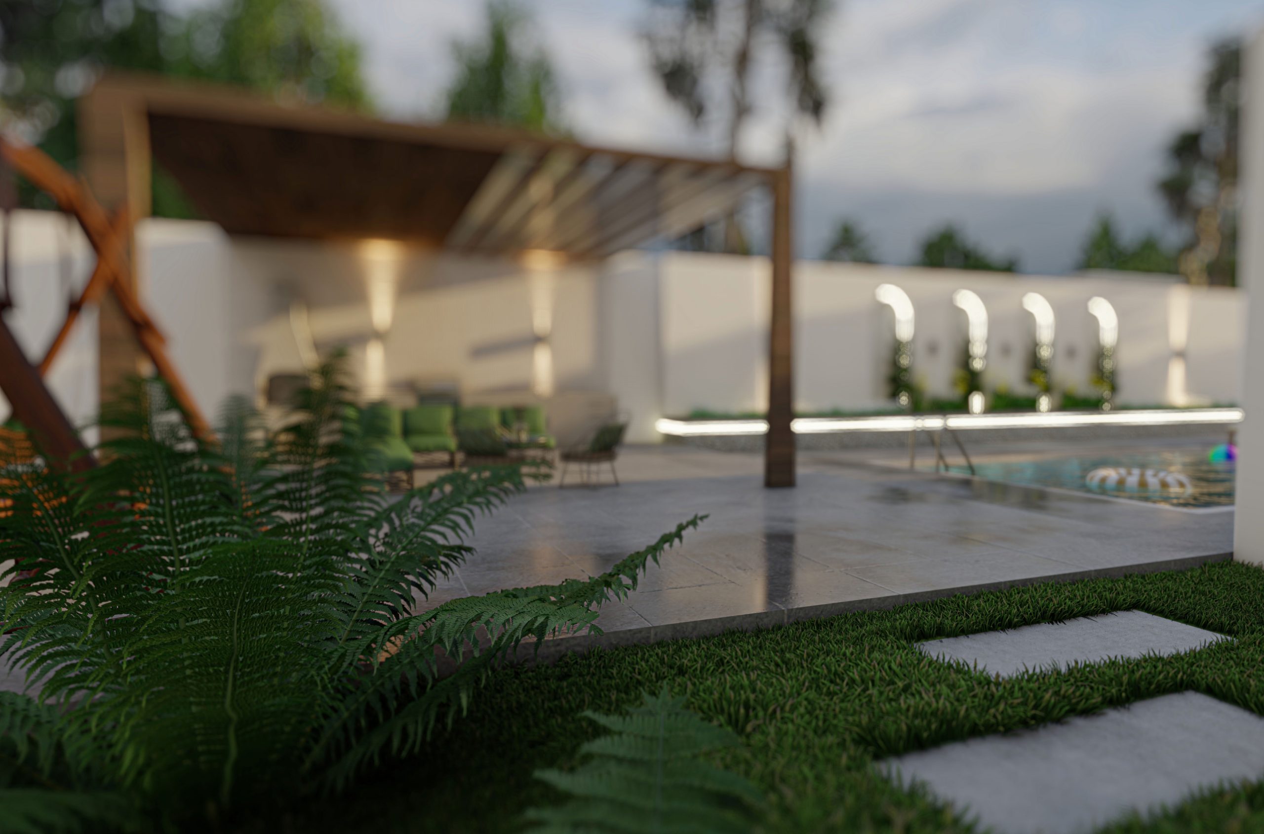 The design of a small pavilion within a 1,000-square-meter garden emphasizes arches as a key architectural element. Luxurious materials were added to enhance the design, while incorporating the client’s preferences for the surrounding garden.