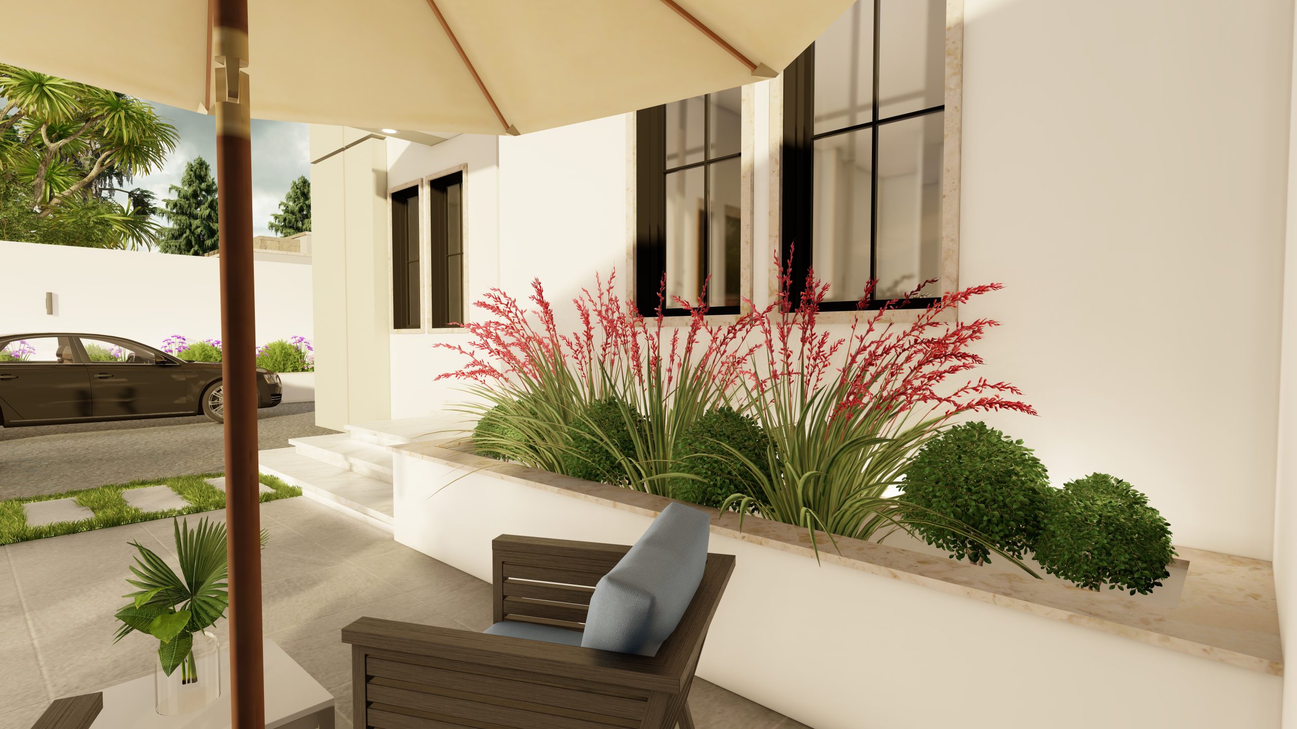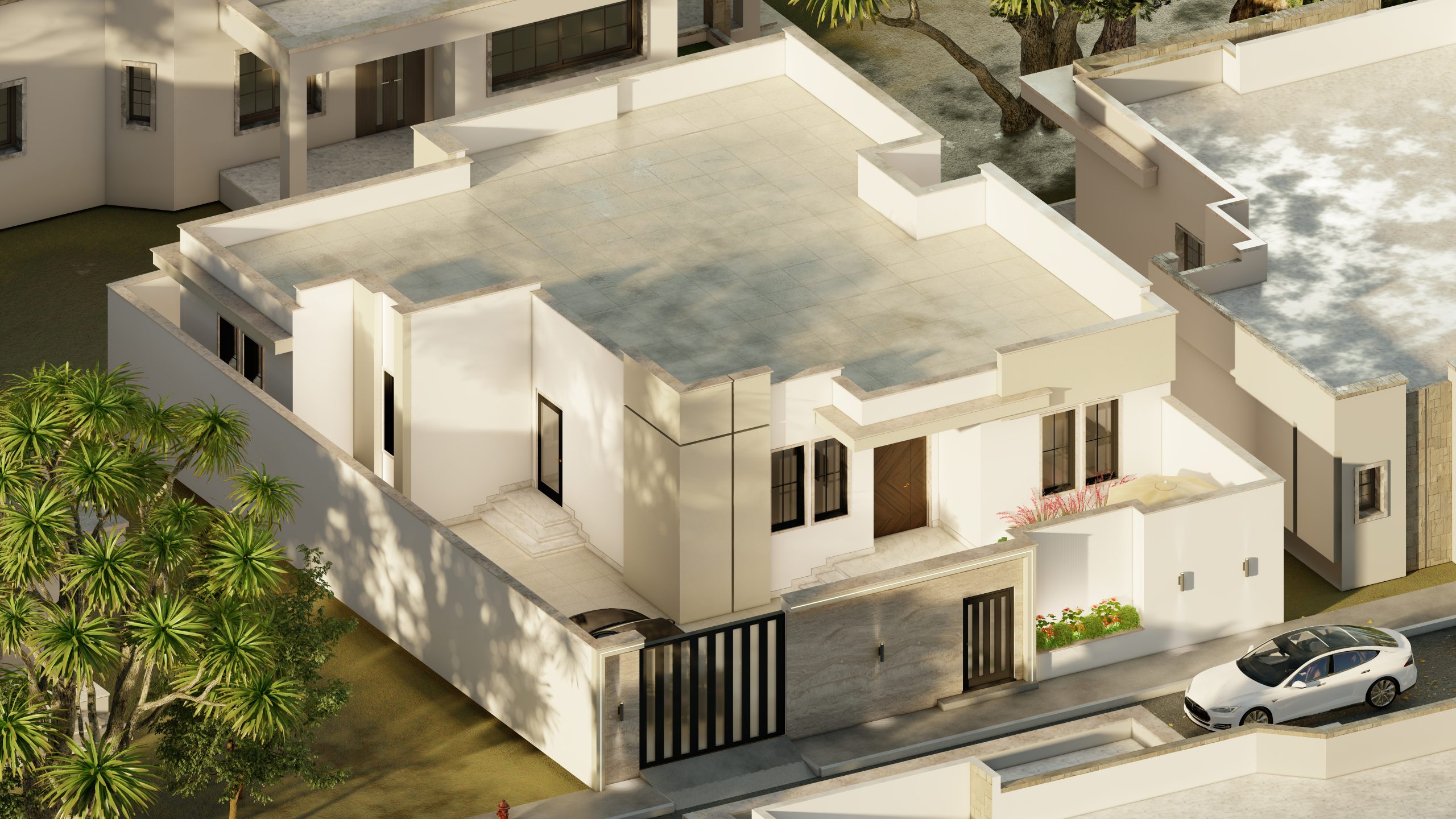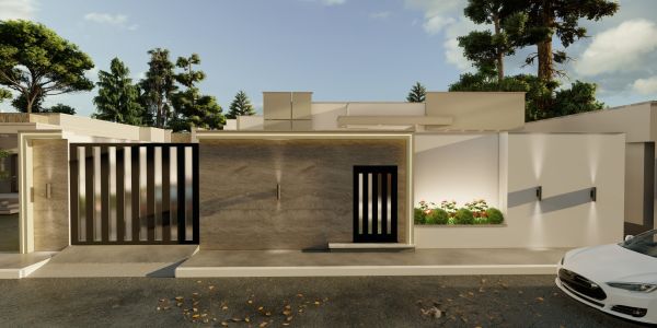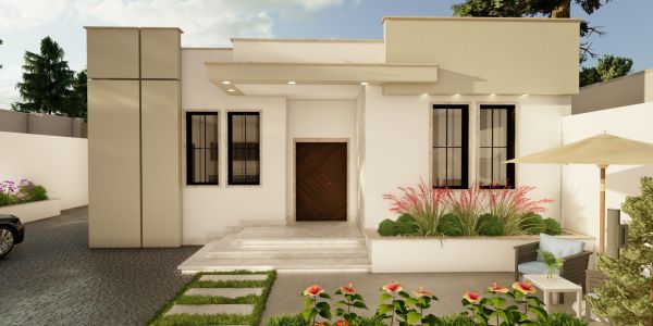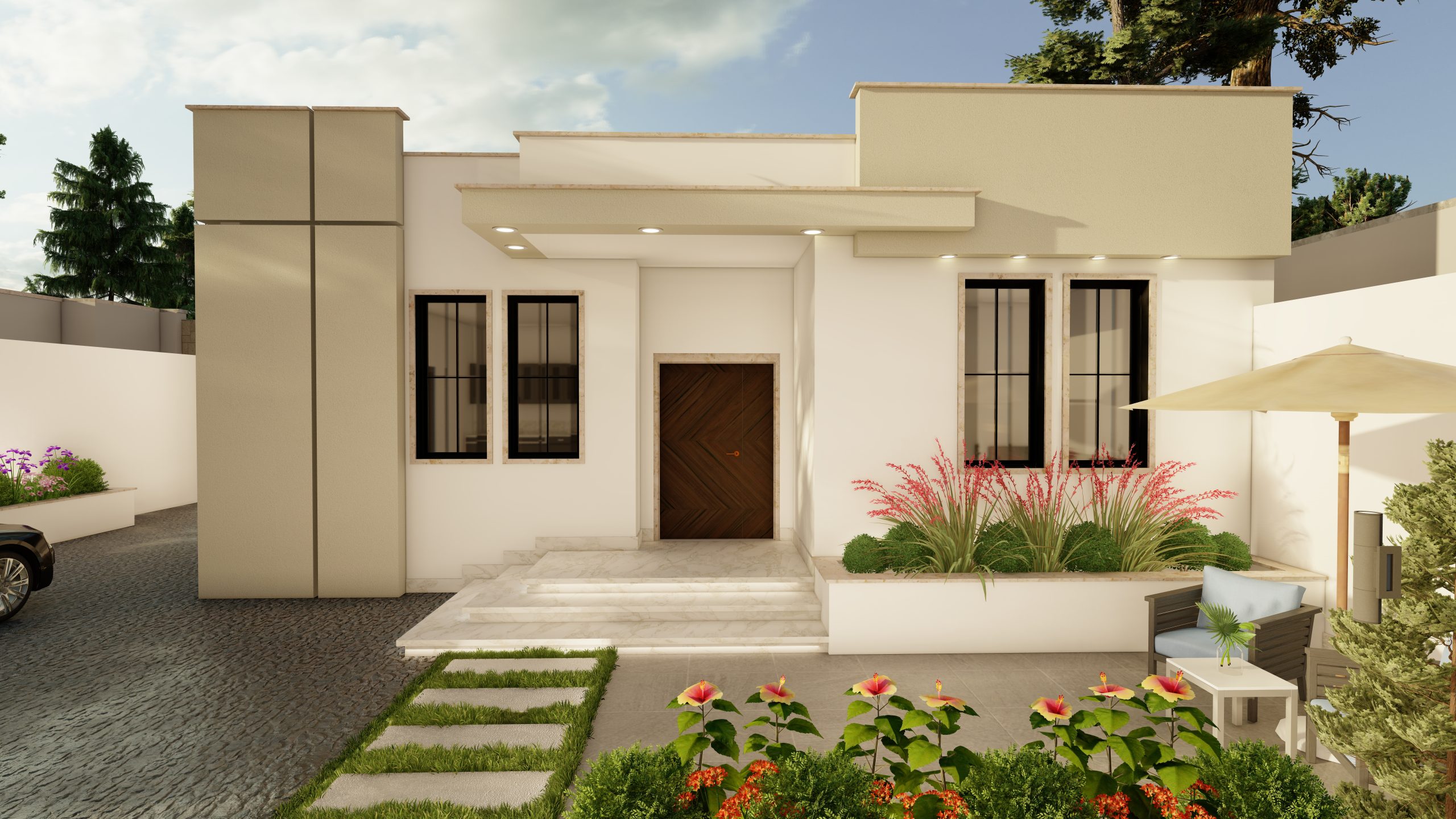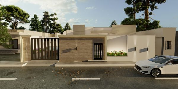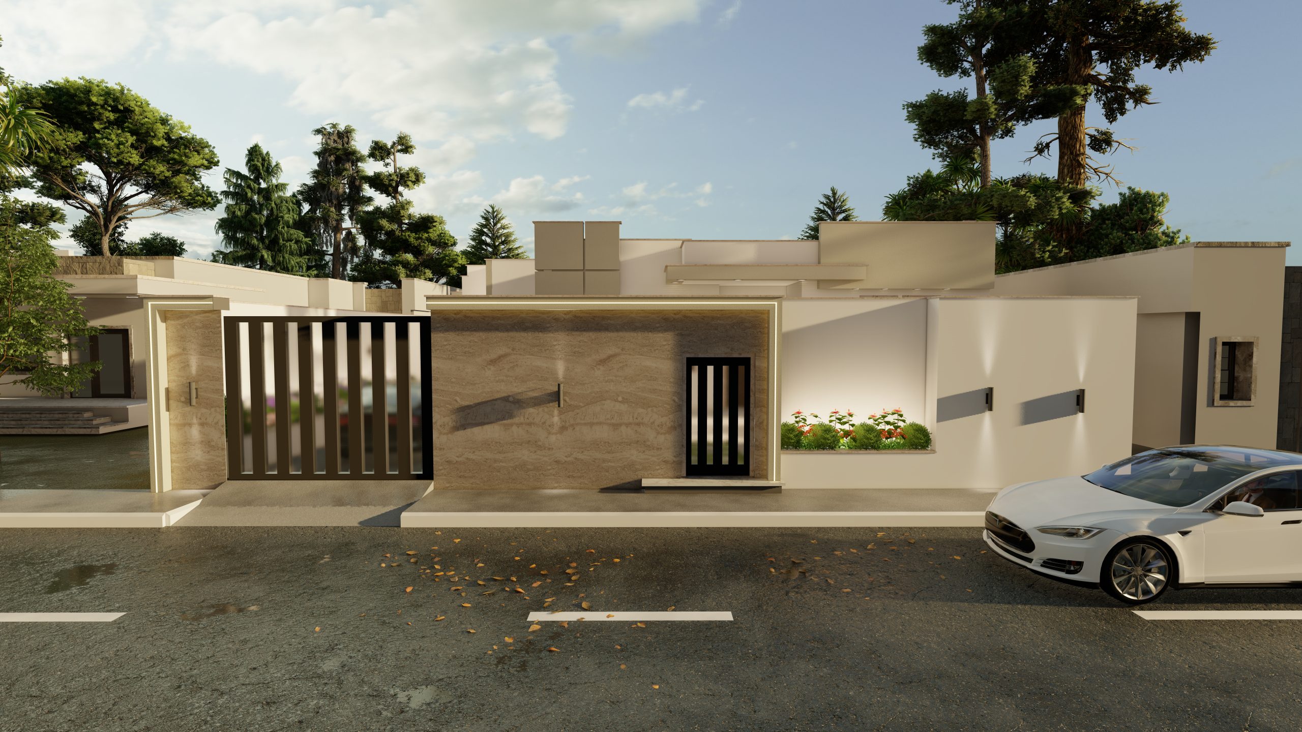 The design of a single-story house incorporates all the client’s requirements within a consistent area of 180 square meters. It includes three bedrooms, two of which have walk-in closets. The client desired simplicity, cost-efficiency, and aesthetic appeal all at once